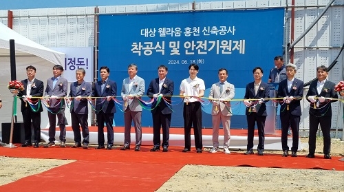 이미지 확대보기대상건설은 18일 홍천 갈마곡리에서 대상 웰라움 홍천 신축공사 착공식 및 안전기원제가 개최됐다고 21일 밝혔다. 이날 행사에는 관계 주요 인사 및 초청 외빈 약 50여명이 참석하여 성공적인 착공과 완공까지 무사고에 대한 염원을 담아 테이프 커팅식 및 안전기원제를 진행하였다.