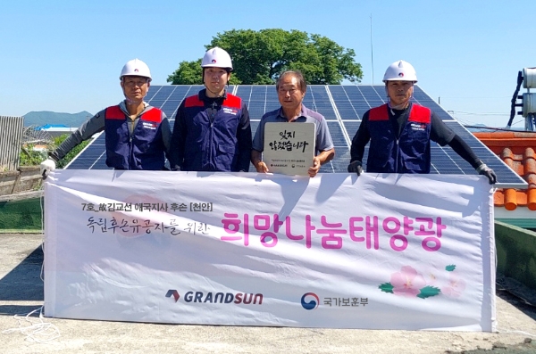 26일 그랜드썬기술단은 올해 들어 국가보훈부와 협력하여 진행한 '독립유공자 후손 희망나눔 태양광지원사업'이 성공적으로 마무리되었다고 밝혔다.