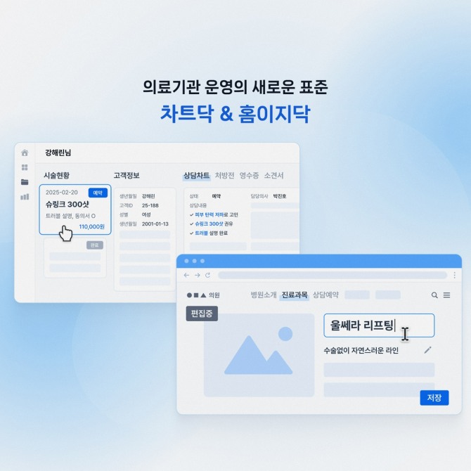 이미지 확대보기이번에 출시된 차트닥의 주요 기능은 △한눈에 보는 고객 상태(예약·접수·진료 기록 관리) △병원 문서의 간결한 관리(처방전, 소견서, 영수증 등 필수문서 간편 운영) △스마트 경영 지원(실시간 데이터 분석, 맞춤 리포트) △외부 플랫폼 연동(네이버 예약, 카카오톡 알림, 인바운드 콜 이용 약 관리) △키오스크 기능 지원(고객 대기시간 관리) 등이다.