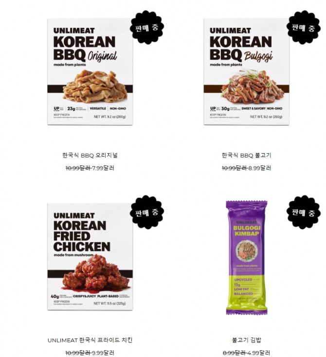 서울에 자리 잡은 언리미트는 남는 곡물과 콩으로 100% 채식 및 유전자 바꾸지 않은 식물성 고기를 만드는 회사다. 이번에 내놓는 제품은 미국 주요 얼린 음식 자리에서 팔 예정이다.