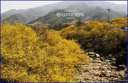 노오란 꽃능선 산수유.