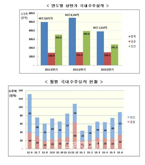 한편, 6월 국내건설 공사수주액은 8조8284억원으로, 지난해 동월대비 32.8% 하락하며 11개월 연속 감소한 것으로 나타났다고 건설협회는 전했다.