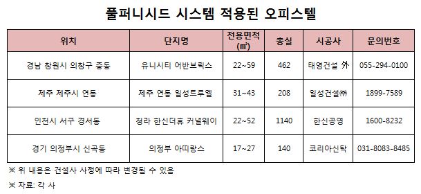 부동산전문가는 “오피스텔 주 고객은 직장인과 학생 등으로 짐이 많이 나오는 이사에 대한 부담감이 있다”며 “비용 절감이 가능한 TV, 냉장고, 세탁기 등을 갖춘 풀퍼니시드 시스템을 갖춘 오피스텔을 선호하는 경우가 많다”고 말했다.