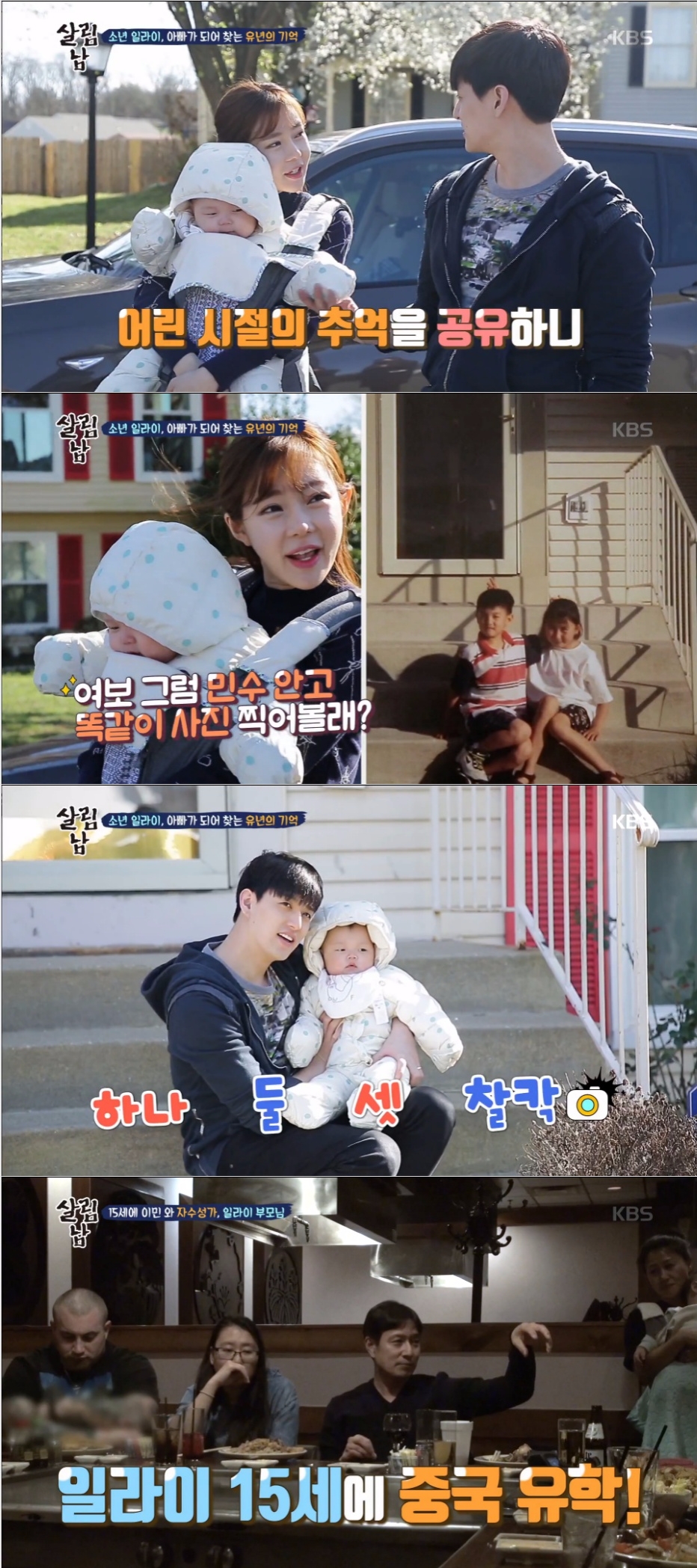 한편 일라이는 본가 방문 이틀째 날, 아내 지연수와 아들 민수군과 소년 시절 살았던 옛 집을 방문해 추억을 되새겼다. 그는 과거 자신이 사진을 담았던 똑 같은 계단에 앉아 이번에는 아들 민수군과 기념사진을 찍었다.