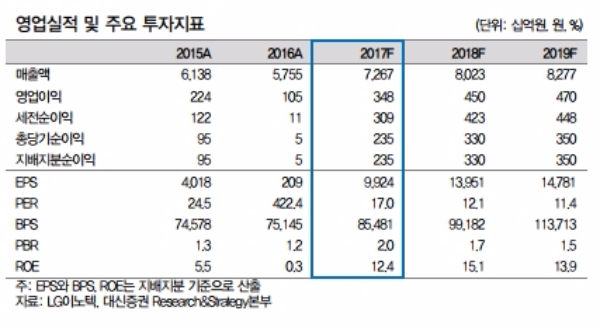 2017년은 적정 매출(손익분기점) 하회로 고정비 부담이 증가하여 영업적자를 예상하나 2018년 LED 칩 가격 하락 둔화, 고파워 조명 LED 매출 비중 증가를 반영하여 흑자전환 가능하다고 분석이다.