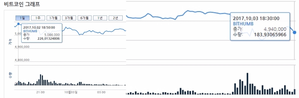 이 같은 비트코인 가격은 2일 오후 6시50분 508만6000원이었던 1 비트코인 당 시세와 비교하면 14만원 가량 떨어진 가격이다.