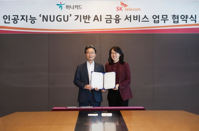 이미지 확대보기이번 MoU를 통해 SK텔레콤은 ‘19년 상반기 중 AI ‘누구’를 통해 음성으로 하나·KB국민카드 혜택 조회, 인근카드 영업점 조회, 카드관련 정보를 제공할 예정이다.