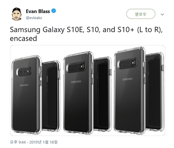 그런데 19일(현지시각) 유출된 프레스(언론)용 갤럭시S10시리즈 렌더링 사진을 보면 갤럭시S10E모델 지문센서가 측면에 들어간다는 것을 추정해 볼 수 있다.