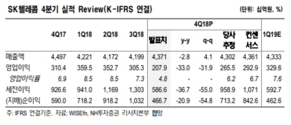 ADT캡스가 연결기준으로 편입되었으나, 요금인하 영향에 따른 이동전화 수익 감소와 SK플래닛관련 일회성 비용 약 900억원이 반영되면서 영업이익은 부진했다.