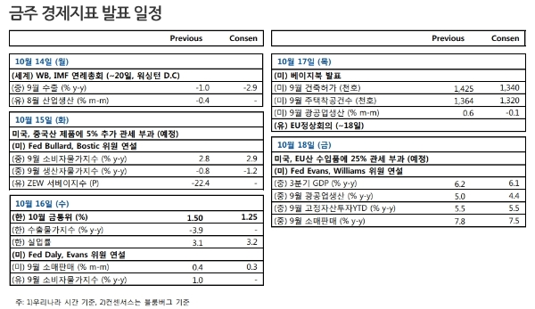 다음주 증시에 확인할 사항은 한국과 미국 3분기 실적시즌의 성적이다.