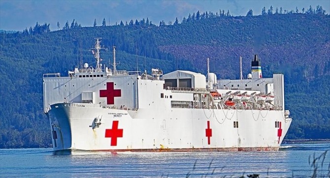 이미지 확대보기24일 미해군에 따르면, 미국은 병원선 두 척을 보유하고 있는데 미국 정부의 코로나19 대응을 지원하기 위해 이동 중이다. 미군이 보유한 병원선은 머시함(The Mercy)과 컴포트함(The Comfort) 등 머시급 두 척이다. 머시함은 뉴욕 근처에, 컴포트함은 샌디에이고 해상에 정박중이었다.