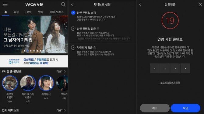 웨이브는 이를 위해 △성인 콘텐츠 숨김 △성인 콘텐츠 잠금 △차단하지 않음 등 세가지 옵션을 제공한다.