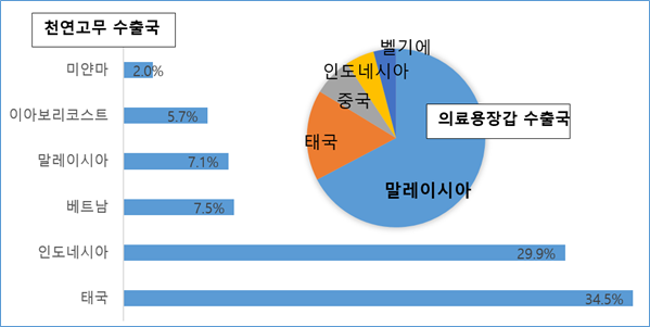 거의 모든 산업이 내리막을 걷는 와중에 의료용/산업용 고무 장갑 제조업과 콘돔시장은 사상 최대의 호황을 맞고 있다. 코로나 바이러스의 확산으로 개인/의료용 보호장비 수요가 폭증하고 있고, 전 세계 수억 명의 사람들이 외출 제한상황에 놓여있어 콘돔 수요도 크게 증가하고 있다. 이 두 품목의 주재료는 고무이며, 말레이시아는 주요 고무 생산지이자 세계 최대 수출국으로 글로벌 수요증가에 따른 기회를 맞이하고 있다.