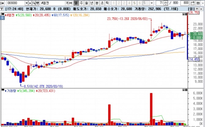 22일 웹젠의 주가는 2만600원으로 마감했다. DB금융투자는 웹젠이 21% 상승 여력이 있는 것으로 추정했다.