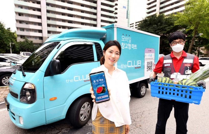 쿨-럽 배송은 냉장 보관한 채로 수박을 배송하는 서비스다. 상품은 점포 보관 단계에서 온라인 전용 냉장고에 들어있다가 주문 즉시 배송 트럭 냉장실에 옮겨져 고객 집 앞까지 배송된다.
