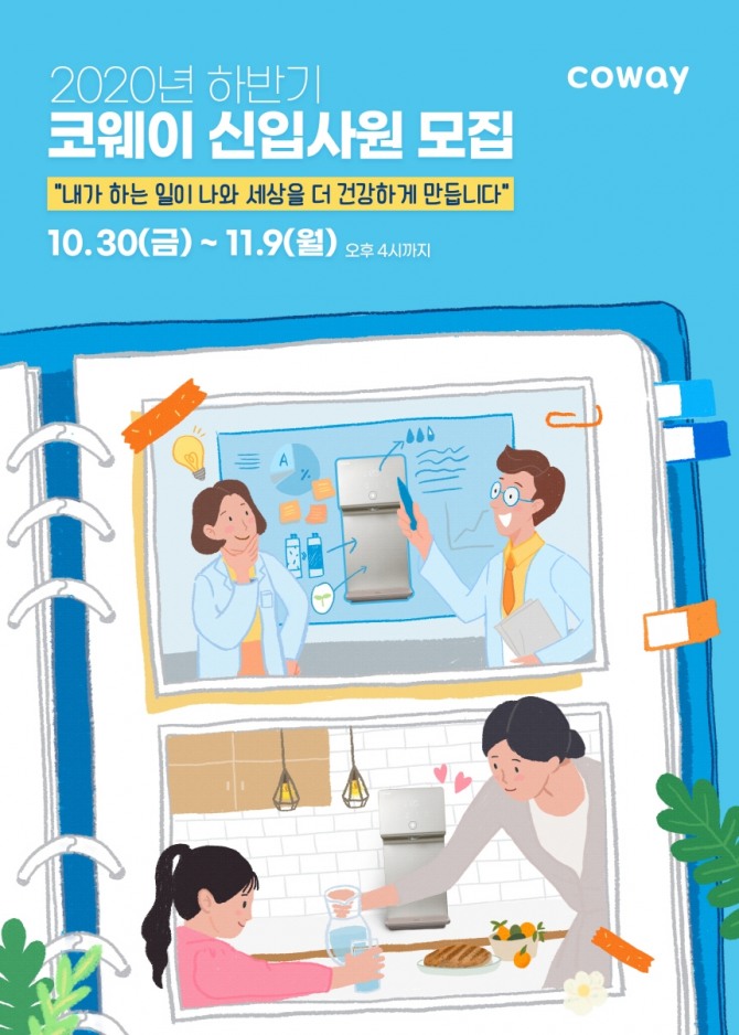 지원 서류 접수는 오는 9일 오후 4시까지 코웨이 홈페이지에서 하면 된다. 최종 선발된 인원은 내년 1월 초 입사하게 되며 12개월 동안의 육성 프로그램을 이수한 후 현업 부서에 배치된다.