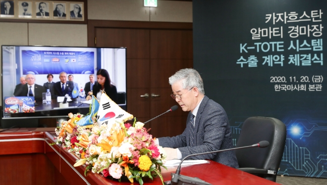 김낙순 마사회장과 사르센바예프 세리크 텐그리인베스트먼트 대표는 각각 경기 과천 마사회 본관 대회의실과 카자흐스탄 알마티 현지에서 온라인을 통해 계약서에 서명했다.