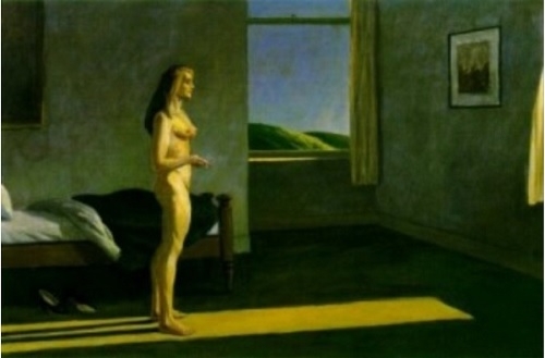 호퍼가 죽기 6년 전에 그린 <햇빛 속의 여인>에게도 꿈이 있던가. 분위기로 봐서 가정집이 아니라 호텔방인 것 같다. 벌거벗은 중년의 여인이 한 손에 담배를 물고 빛 속에 서 있다. 열려진 유리창 밖으로 산등성이가 보이고 또 다른 창의 커튼자락이 살며시 바람에 나부낀다. 마치 누군가 그녀를 엿보고 있기라도 하듯이. 그러나 여자는 그 누군가의 눈을 전혀 개의치 않고 당당하게 창을 향해 두발을 벌리고 서 있다.