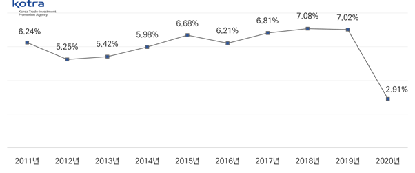 2011~2020년 베트남의 GDP 성장률 추이
