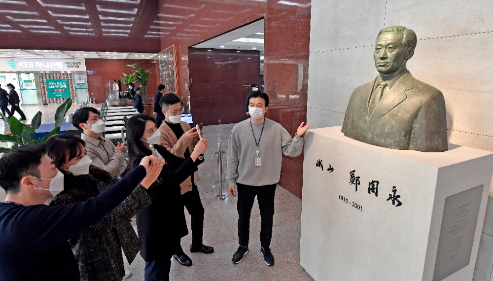 현대차그룹 계동 사옥 본관은 정 명예회장이 한국 경제 성장 신화를 쓴 상징적 공간이다. 흉상을 중심으로 정 명예회장의 업적을 기리는 소규모 추모 공간이 마련됐다.