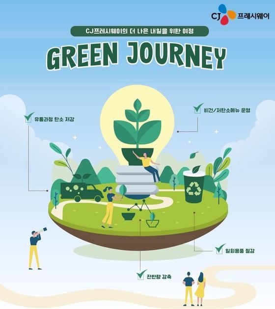 CJ프레시웨이는 지난 6월 한 달간 단체급식 점포 38곳의 식자재 배송 횟수 최적화를 통해, 배송 거리를 이전 대비 1553㎞를 줄이며 540㎏의 이산화탄소 배출을 감축하는 성과를 얻었다. 이는 30년산 소나무 약 82그루가 1년 동안 흡수하는 탄소량과 맞먹는다.