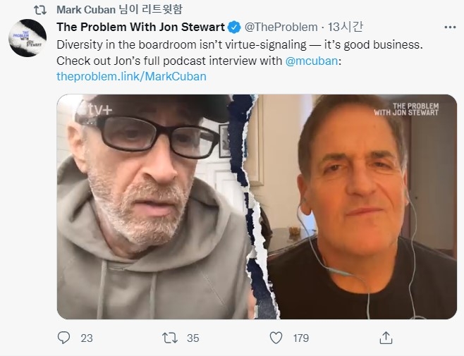 억만장자 투자자 마크 큐반(오른쪽)이 13일(현지시간) 팟캐스트에 출연해 코미디언이자 전 데일리쇼 진행자인 존 스튜어트에게 신규 투자의 약 80%를 암호화폐에 투자하고 있다고 밝혔다. 사진=마크 큐반 트위터