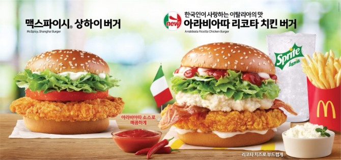 이번에 출시된 이 버거는 맥도날드 인기 메뉴인 ‘맥스파이시 상하이 버거’ 패티에 이탈리아를 대표하는 아라비아따 소스와 리코타 치즈를 가미, 색다르고 이국적인 풍미를 느낄 수 있는 메뉴다. 100% 닭가슴살 통살에 매콤한 토마토 베이스의 아라비아따 소스로 한국인이 사랑하는 매운맛을 추가했으며 리코타 치즈는 부드러운 식감과 고소한 맛을 선사한다. 여기에 베이컨, 양상추, 양파 등 다양한 식재료까지 곁들여 씹는 재미와 감칠맛을 한층 끌어올렸다.