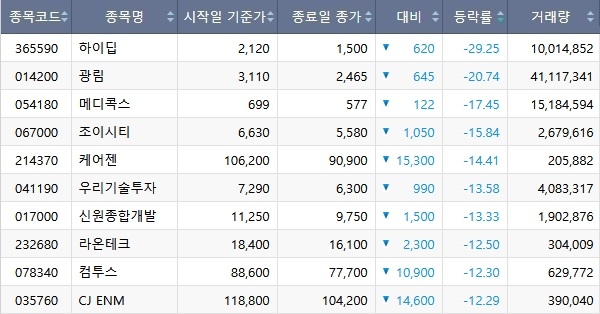 이미지 확대보기한국거래소에 따르면 조이시티의 12일 종가는 시가 대비 15.84% 하락한 5580원이었다. 코스닥 기준 일일 하락률 4위, 코스피·코넥스까지 통합하면 6위에 해당하는 기록이다.