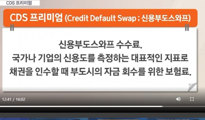 CDS 프리미엄은 CDS를 사고팔때 적용하는 보험수수료이다. CDS의 영어 원어는 Credit Default Swap. 기업이나 국가의 파산 위험 자체를 사고팔 수 있도록 만든 파생금융상품을 말한다. 우리말로는 신용부도스왑이다. 거래를 하는 당사자 중 한쪽이 다른 상대방에게 수수료를 주는 대신 해당 국가 채권 즉 국채에서 채무 불이행이 발생할 경우 그 상대방으로부터 보상을 받도록 설계된 금융 상품이다. 일종의 위함자산 인수에 대한 보험이다. CDS 프리미엄은 그 보험 수수료인 셈이다.