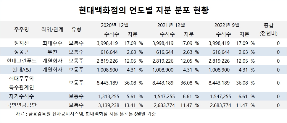 이미지 확대보기현대백화점은 최대주주 정지선 회장이 지분 17.09%를 보유하고 있습니다.