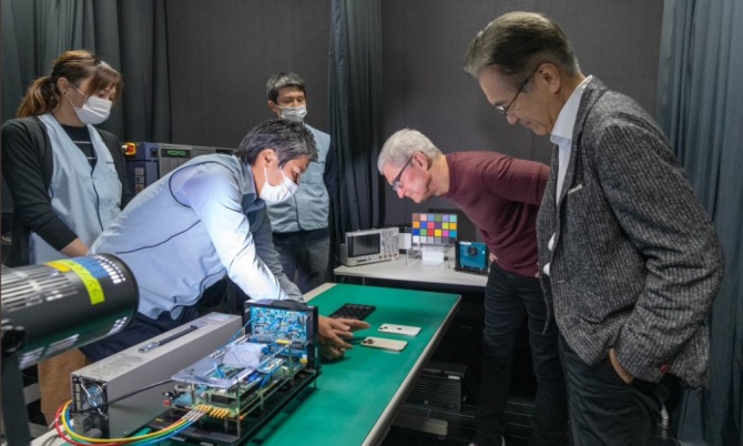 특히 소니 렌즈 공장에서 요시다 켄이치로 소니 대표이사와 접견했으며, SNS를 통해 "세계 최고의 아이폰용 카메라 센서를 위해 10년 넘게 협력해온 파트너"라며 소니를 추켜세웠다.