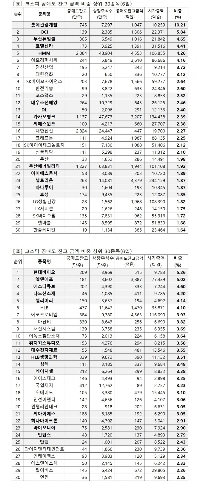 이미지 확대보기유가증권시장 시가총액 대비 공매도 잔고금액 비중(6일)