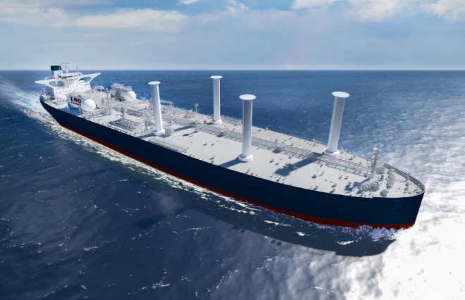 ‘신개념 친환경 돛 하이로터(Hi-Rotor)’은 과거 범선을 연상케 하는 장치다. 선박 풍력보조 추진 장치인 로터세일의 일종으로, 선박 갑판에 설치되는 원기둥 형태의 구조물로 돛 역할을 한다. 하이로터는 바람을 이용하면서 최대 180rpm(분당 회전수)의 빠른 속도로 회전, 선박에 추진력을 더한다. 일반 선박과 비교해 6~8%의 연료 절감 효과를 기대할 수 있다.