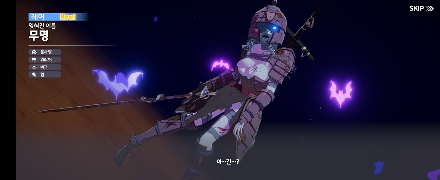 이미지 확대보기김철희-무명은 말 그대로 '이름이 없다'는 뜻이다. 본래는 가장 낮은 등급인 커먼으로 설계했다. 상대적으로 개성이 없어야 돼서 투구로 얼굴을 가리고 말을 제대로 못하게 디자인했는데 오히려 컬트적인 인기를 얻게 돼 커먼에서 레어로 전환하게 됐다. 다만 정령 승급에 사용되는 커먼-레어의 경우 성장에 한계가 있도록 기획됐는데 이 레어 정령이 에픽으로 승급하게 되면 다른 에픽 정령보다 강해지는 밸런스 불균형이 발생하게 된다. 따라서 레어 정령의 에픽 승급은 어렵지만 다음 4분기에 공개될 메인 스토리 '제 6장'에서 구원자를 둘러싼 세력구도의 개편이 있을 것이다. 이 때 레어 정령들의 입지가 변경될 예정이다. 아직 스토리가 상세히 공개되지 않았지만 레어 정령의 다른 모습으로 에픽 정량이 등장할 예정이다.