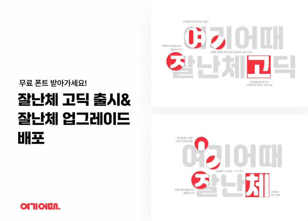 여기어때가 만든 한글 브랜드 서체 '잘난체'에 이어 두 번째 신규 서체가 공개됐다.