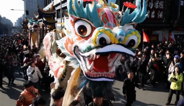 오픈AI가 공개한 '소라' 예시 영상을 캡처한 것 '용과 함께 하는 중국 춘절 축하 공연'이란 텍스트를 바탕으로 제작됐다. 사진=오픈AI