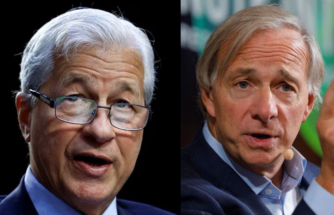 제이미 다이먼 JP모건체이스 CEO(왼쪽)와 레이 달리오 브리지워터어소시에이츠 창업자. 사진=로이터