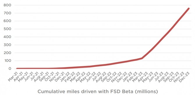 이미지 확대보기지난해 3월부터 테슬라의 FSD 베타 버전의 주행 누적 마일수는 증가하고 있다. 작년 테슬라의 잉여현금흐름(FCF)은 22억3038만달러로 직전 연도 대비 약 50% 감소했다. 하지만 작년 한 해 동안 분기별로 보면 FCF는 증가 추세에 있다.
