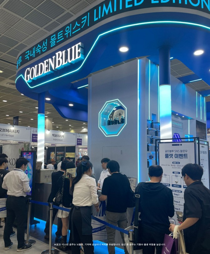 골든블루가 ‘2024 서울국제주류&와인박람회’에 참가해 다양한 이벤트를 진행하며 소비자들의 눈길을 사로잡고 있다.