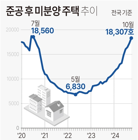지난해 10월 전국 기준 악성 미분양으로 불리는 준공 후 미분양 주택이 4년 4개월 만에 최대치를 기록했다. 준공 후 미분양 주택 추이 표. 사진=연합뉴스이미지 확대보기