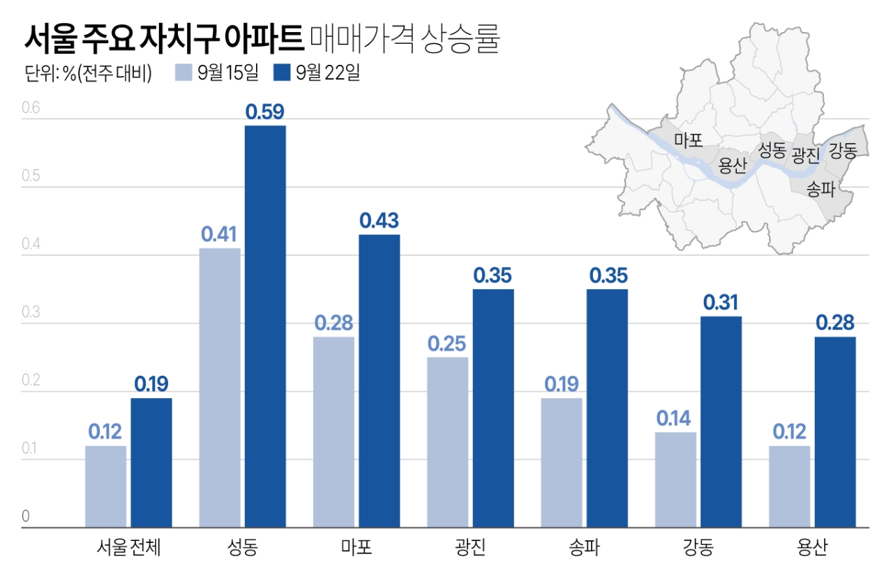 한국부동산원 통계를 보면 서울 아파트 매매가격은 34주 연속 오름세다. 특히 서울 핵심 지역일수록 가격 상승폭이 가파르다.
