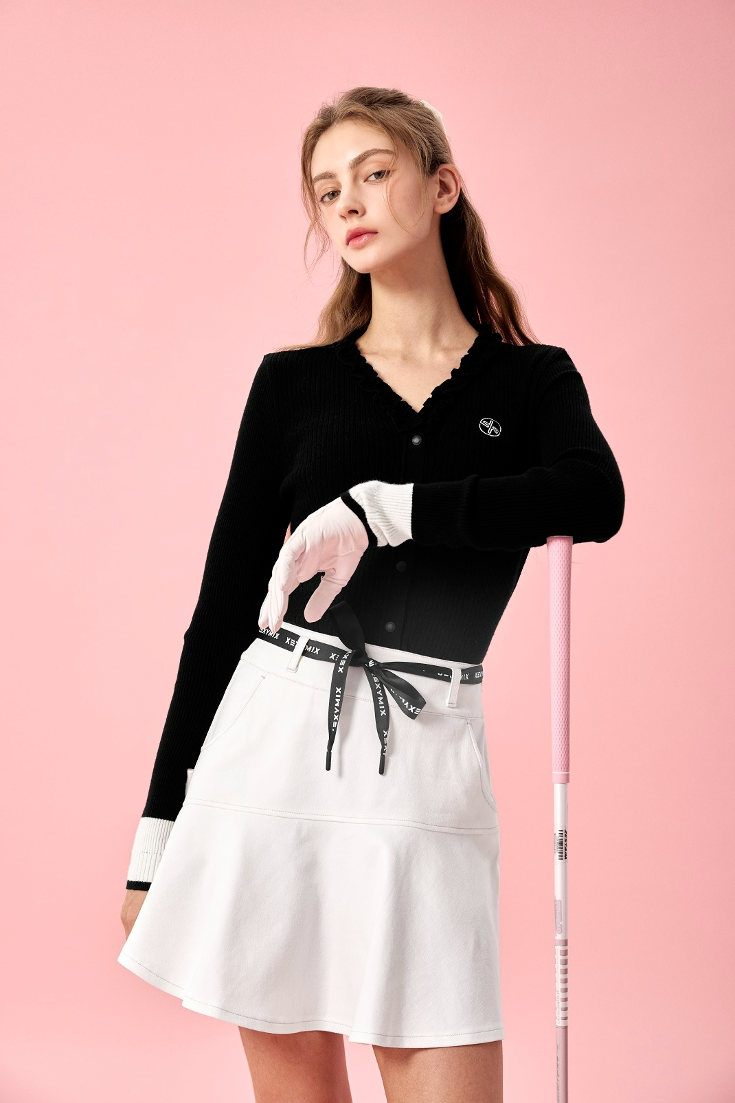 ‘러플 브이넥 니트 가디건’은 러플 디테일과 라인을 살려주는 슬림핏으로 보다 여성스러움을 강조했다. 배색으로 포인트를 준 소매 단과 밑단에는 립 짜임으로 마감해 늘어짐 없이 안정적인 핏을 연출한다. 흡수력과 통기성이 높은 라이오셀 원단으로 착용 시 쾌적함을 유지해 주며, 이 제품 역시 UPF50+의 높은 자외선 차단 효과를 갖췄다.