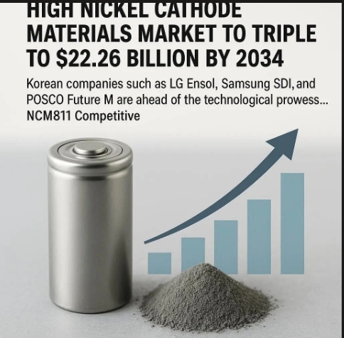 보고서는 고니켈 양극재 시장이 2025년부터 2034년까지 해마다 평균 13.24%씩 커지며 내년 82억 3000만 달러(약 11조 7500억 원)에서 2034년 222억 6000만 달러로 확대된다고 분석했다.