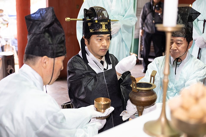 이미지 확대보기석전대제는 공자를 비롯한 유교 성현들의 학덕과 가르침을 기리는 국가무형문화재 제85호 제례로, 조선시대부터 이어져 내려온 가장 전통 있고 권위 있는 유교 의식이다. 초헌관은 제례의 첫 잔을 올리는 가장 높은 직위로, 의식의 중심을 담당한다.