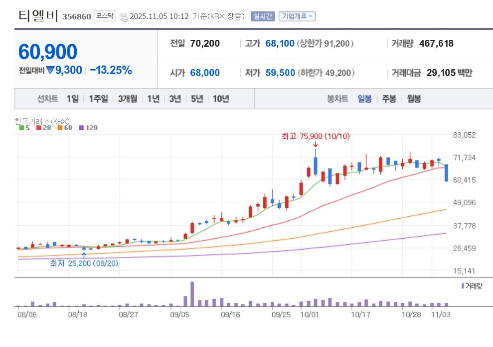 티엘비 주가 추이. 자료=네이버페이 증권이미지 확대보기