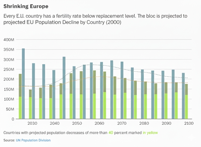 유럽 대륙이 14세기 흑사병 이후 처음으로 구조적 인구 감소에 직면할 것이라는 위기의식이 커지고 있다며 WP는 이같이 전했다.