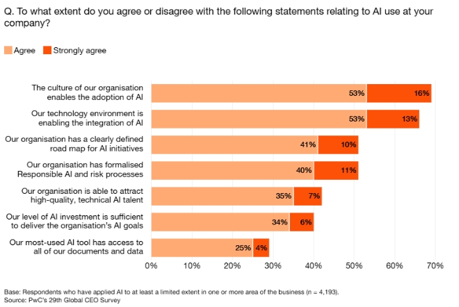AI 도입에 대한 기업 내부 여건 인식. 사진=PwC
