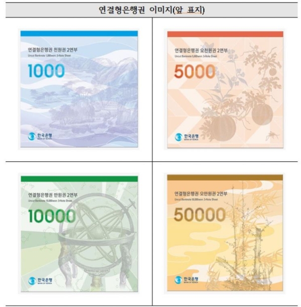 연결형 은행권은 낱장으로 잘리지 않고 연결되어 있는 형태의 기념화폐를 의미한다. 이번에 판매되는 연결형 은행권 중 5만원권 2면부는 2024년 처음 출시될 당시 2.2대 1의 경쟁률을 기록하며 높은 인기를 자랑한 제품이다.