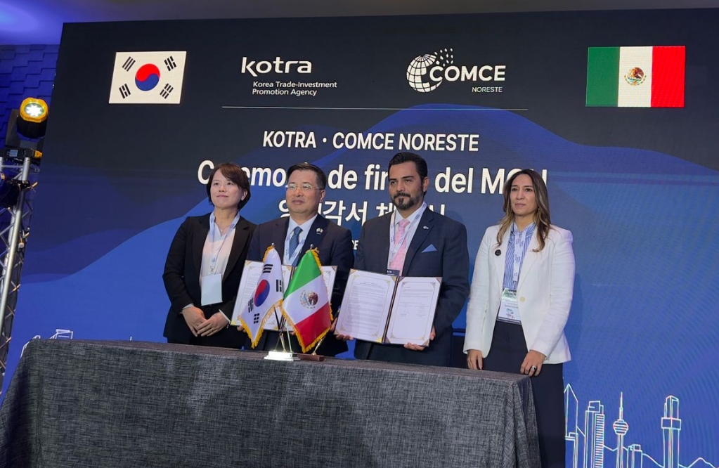 13일(현지시각) 멕시코 인더스트리 등 현지 보도에 따르면, KOTRA는 현지에서 강경성 사장과 베타스베 호차 니에토(Betasbe Rocha Nieto) 누에보레온주 경제부 장관 등 양국 관계자들이 참석한 가운데 사무소 재개소 기념식 및 양해각서(MOU) 체결식을 가졌다.