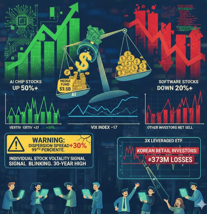 AI 칩주 급등·소프트웨어주 급락 극명한 대조…헤지펀드 35억 달러 쏠림 현상
